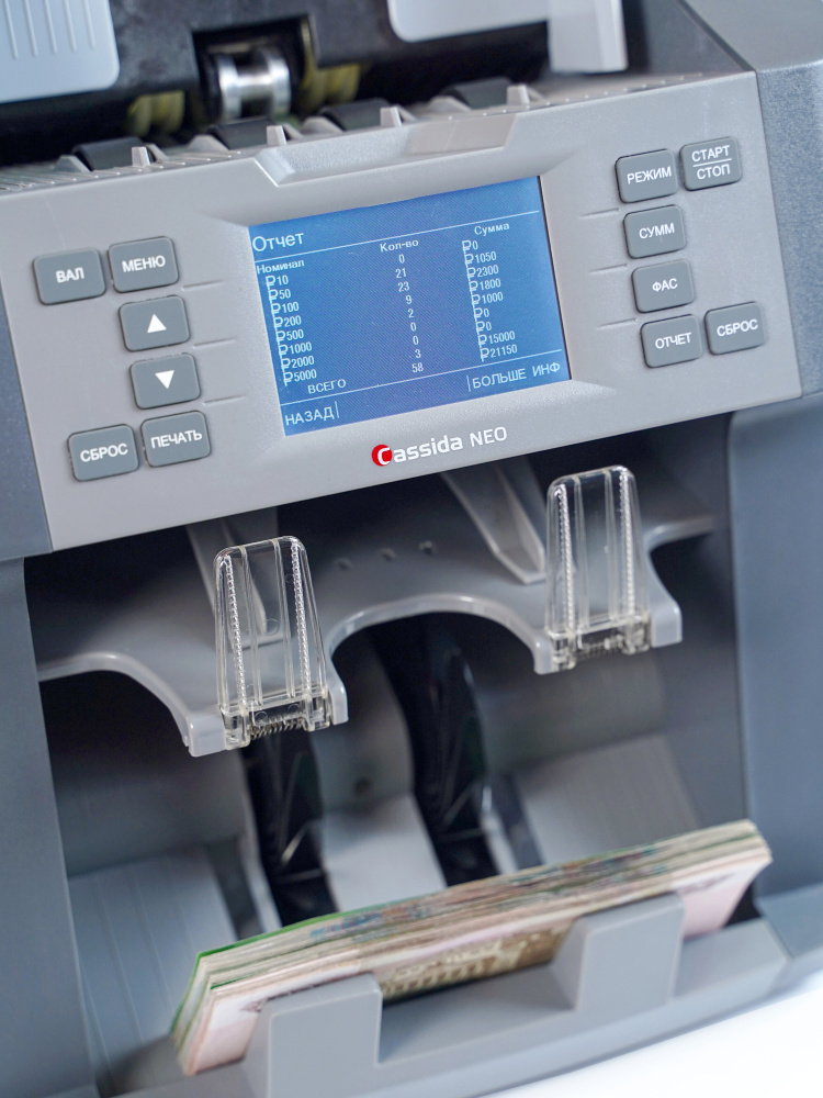 Режимы работы: Микс; Номинал; Счет; Сортировка по лицу; Сортировка по ориентации.