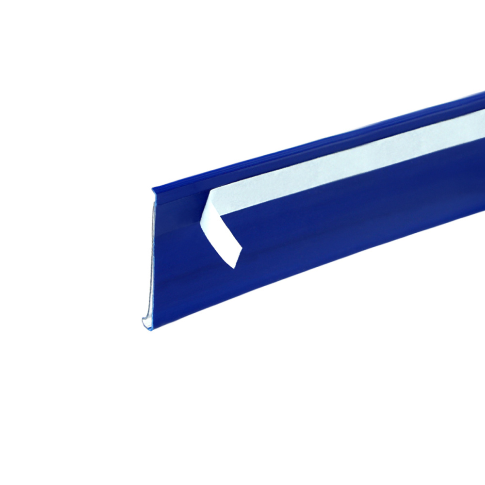 Самоклеящийся ценникодержатель DBR высотой 39 мм синего цвета является самым популярным решением для размещения ценников на полках с товарами. Крепится на поверхность при помощи скотча, нанесенного на него, и применяется для размещения ценников стандартного размера высотой 39 мм. Он используется во всех форматах розничных продуктовых магазинов и форматах супермаркетов.