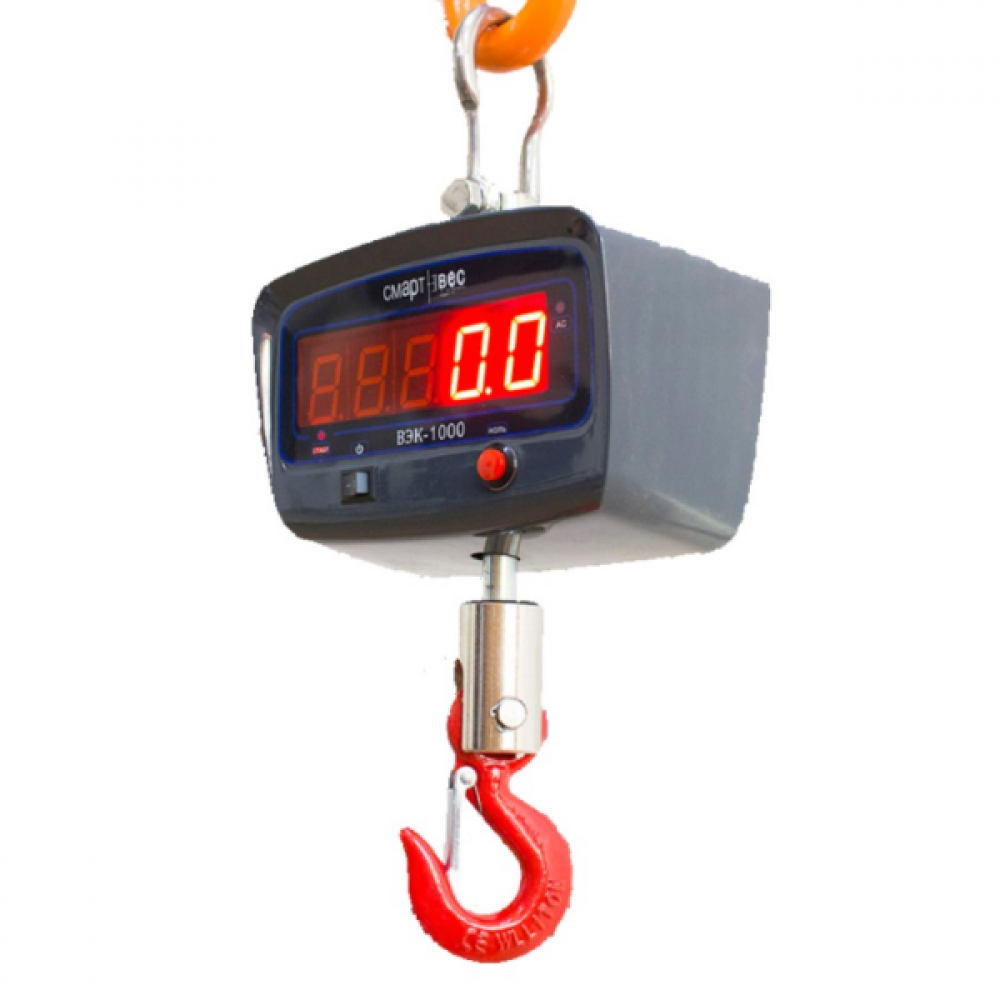 Весы крановые электронные ВЭК-1000.  Электронные крановые весы предназначены для применения в производственных и коммерческих целях, при складском учете, при различных видах контроля и т.п.  Крановые весы управляются с помощью дистанционного пульта, а информация о весе груза отображается на дисплее самих весов. Весы внесены в Госреестр и имеют свидетельство об утверждении типа средств измерения.